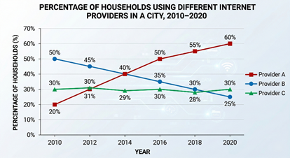 WRITING TASK 1 The chart below shows the percentage of households using three different internet providers in a city between 2010 and 2020.